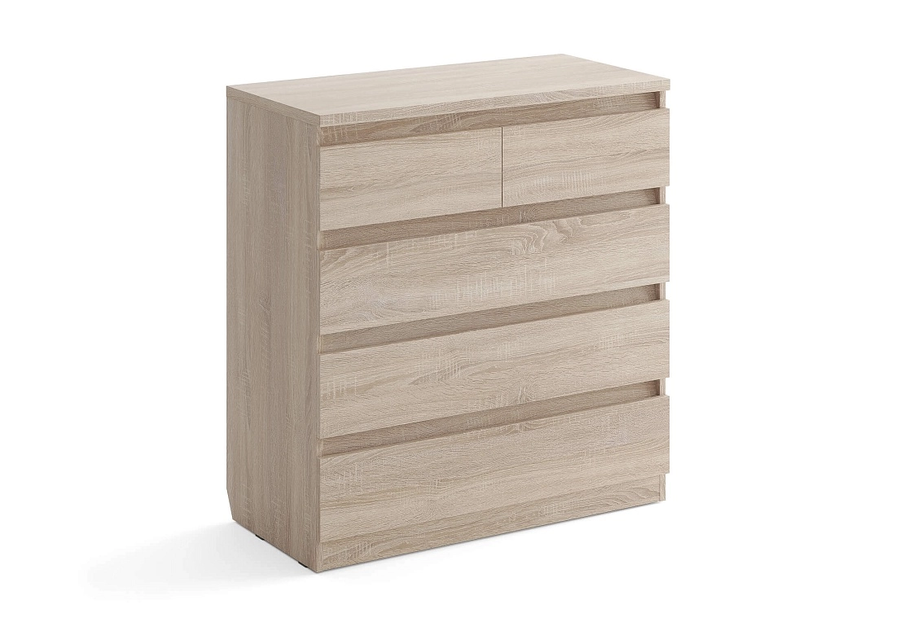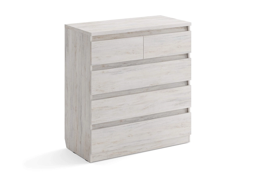Белый комод Aksel 5 ящиков - дуб сонома