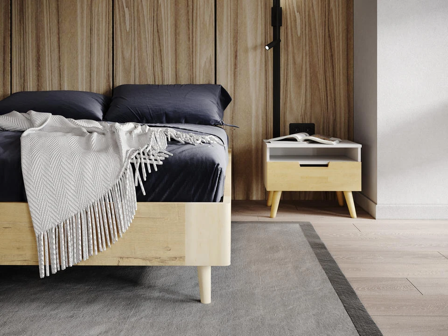 Угловой элемент кровати выполнен из массива березы, а ножки из массива березы (по умолчанию) или дуба на выбор.