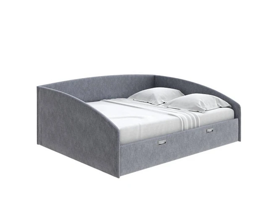 Двуспальная версия имеет увеличенное спальное место и усиленный каркас, рассчитанный на повышенные нагрузки. Внешне она сохраняет стильный тканевый дизайн и удобные выкатные ящики снизу.